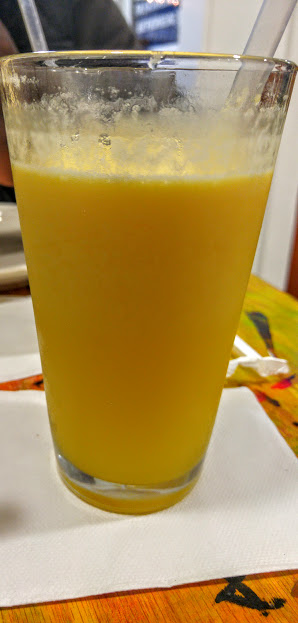 Roosevelt ordered a hamburger Venezuelan style and we ordered fresh fruit juices; Passion Fruit or “Maracuya” and Mango Juice.